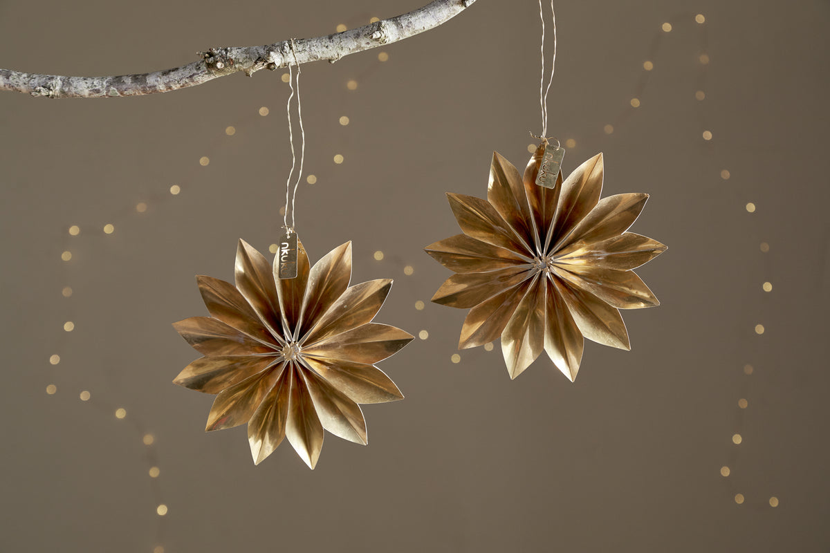 Inspired by the delicate charm of traditional paper decorations, the Amata brass star baubles reinterpret their lightness and form in enduring antique brass. This collection celebrates handmade traditions and the quiet beauty of festive rituals, transforming a humble material into something lasting and luminous. The star shapes bring a timeless, understated elegance to seasonal decorating.