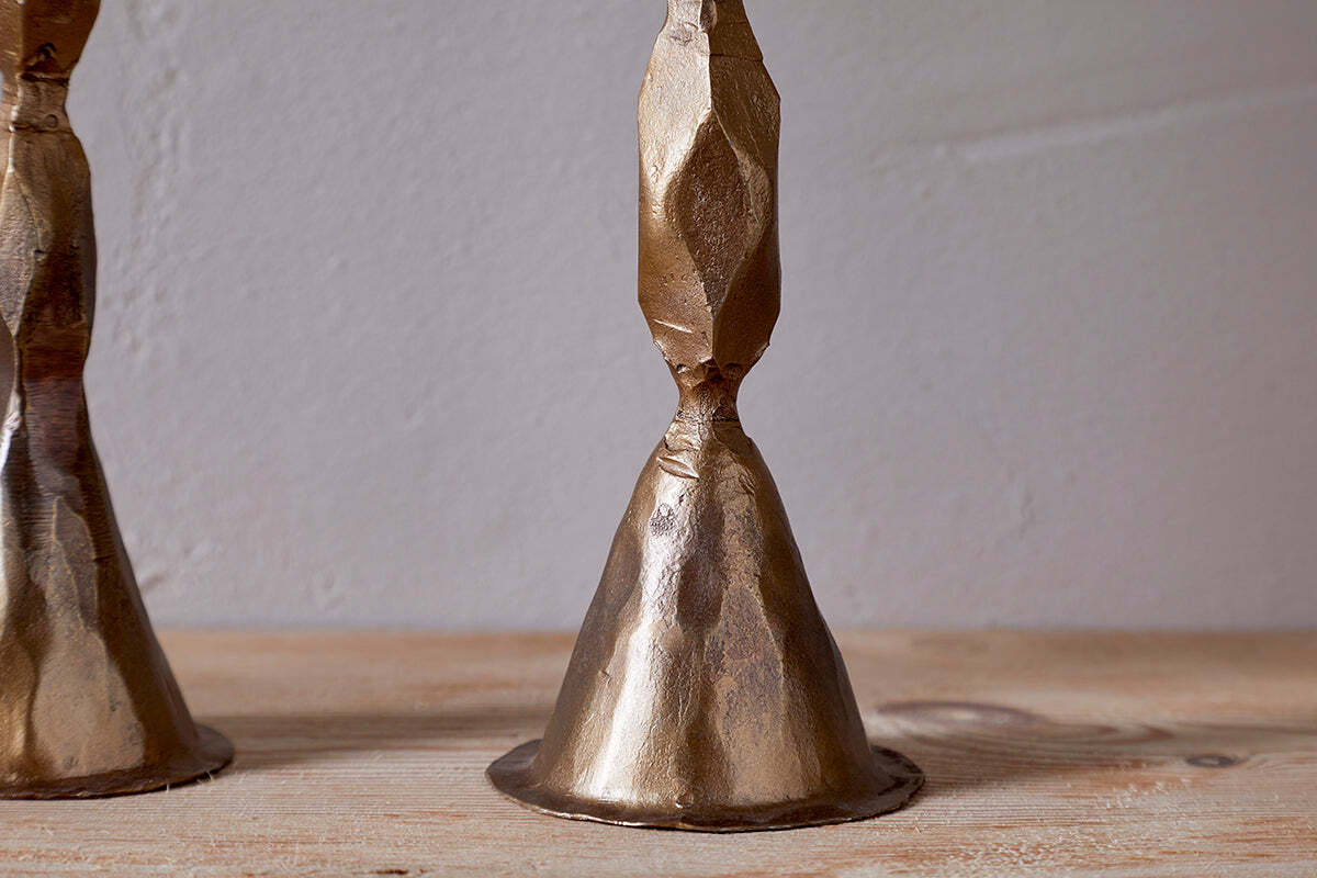 At nkuku we are drawn to organic shapes and unique textures and our Shani Candlesticks perfectly embody both. Crafted from molten aluminium poured into moulds, they feature beautifully textured, organic ball shapes along the body. The antique brass finish adds a timeless touch. Perfect for styling on a dining table or sideboard, pair them with our soy blend dinner candles for a warm, inviting glow. Available in three sizes, they also make a thoughtful gift.