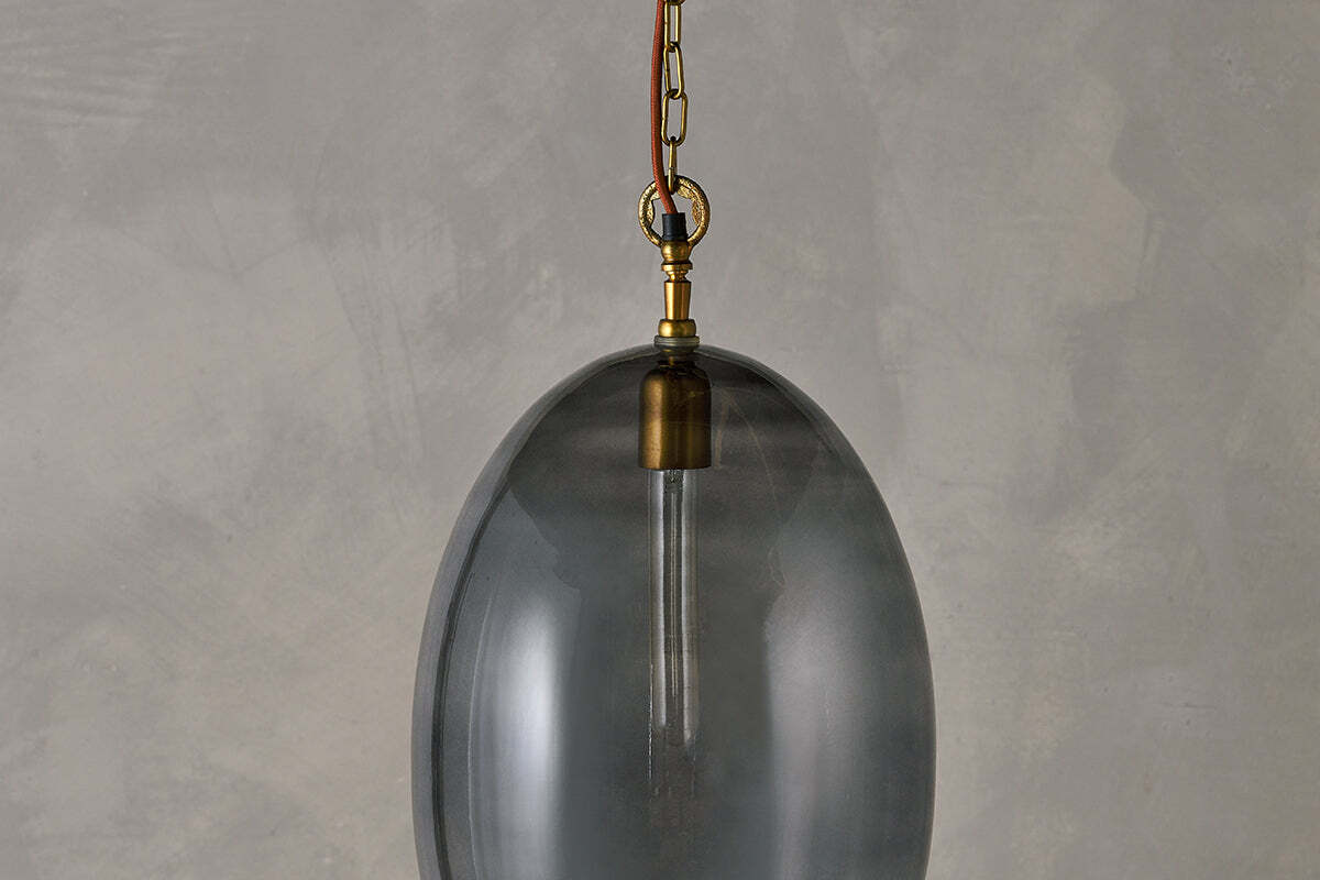 Create an impressive focal point with our large Otoro oval pendant light, beautifully crafted from recycled glass in a sophisticated smoke hue that gently diffuses the light. When switched off, the elegant neutral colour adds warmth to the room and when on, the light is soft and delicate. The size of the light makes it a striking feature light. Style as a central light in your living room or hallway, or position in a stairwell or entrance porch.