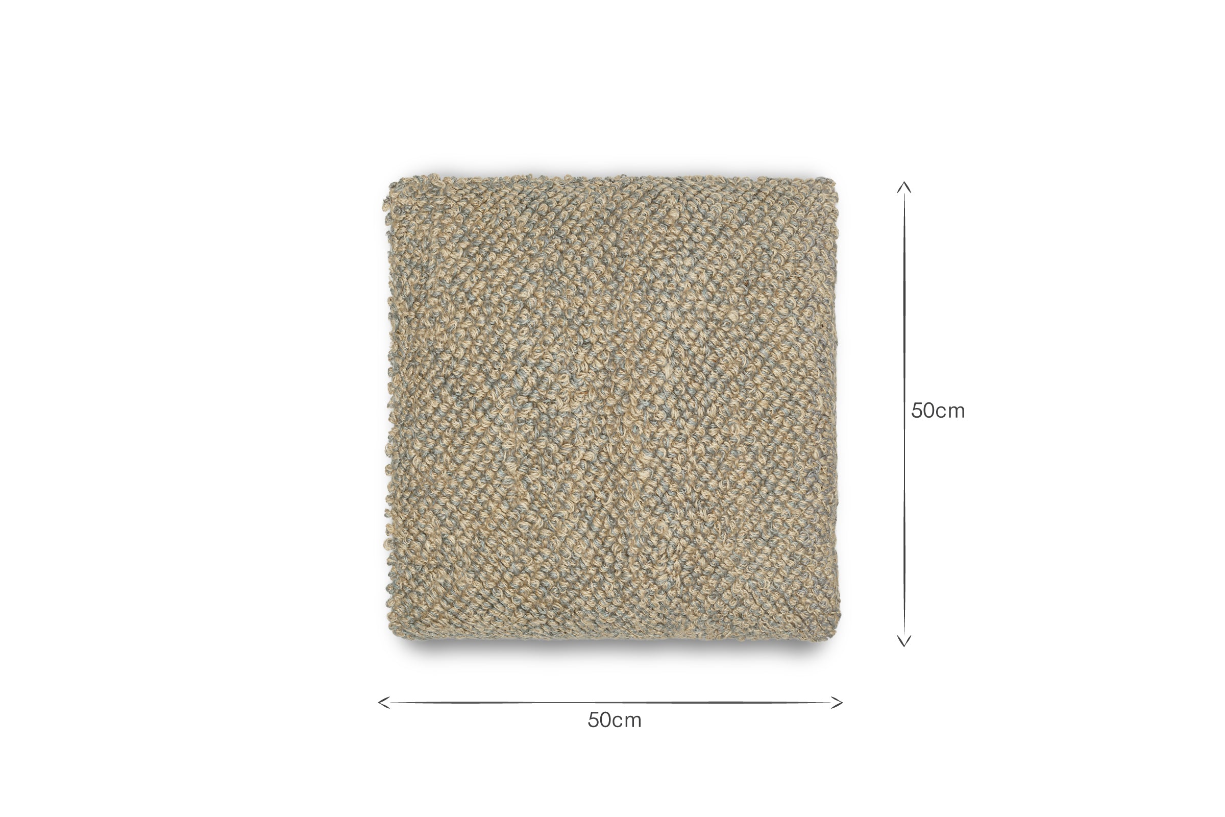 Our Paduna cushion covers elegantly infuse your living space with both colour and texture. We love the blend of natural jute and cotton to create a fabric that is not only durable but soft to the touch. The beautiful soft hues of blues and browns provide an understated hint of colour. Masterfully crafted by hand, this cover features contrasting sections to enhance its allure. It is also available in a rectangular shape, offering versatility in design.