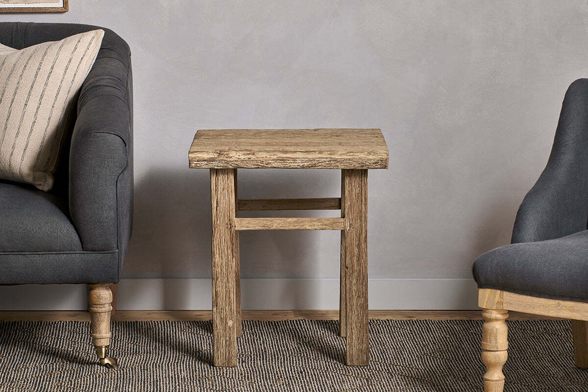 The Ibo collection celebrates the versatility and creativity of Indian artisan craftsmanship, as perfectly demonstrated by the Ibo side table. Made from rustic reclaimed wood, this piece spent a former life travelling on the exterior of an Indian truck, and has been re-purposed to create a stylish side table. The weathered tone and imperfections of the materials comes through beautifully, with every piece showing unique variations in the tone of the wood, authentic rough textures, and knots and splits in the grain only add to the rustic charm. Strong and sturdy, the design is stylish yet simple, and the pale, natural finish creates a laidback look that fits well into a relaxed decor.