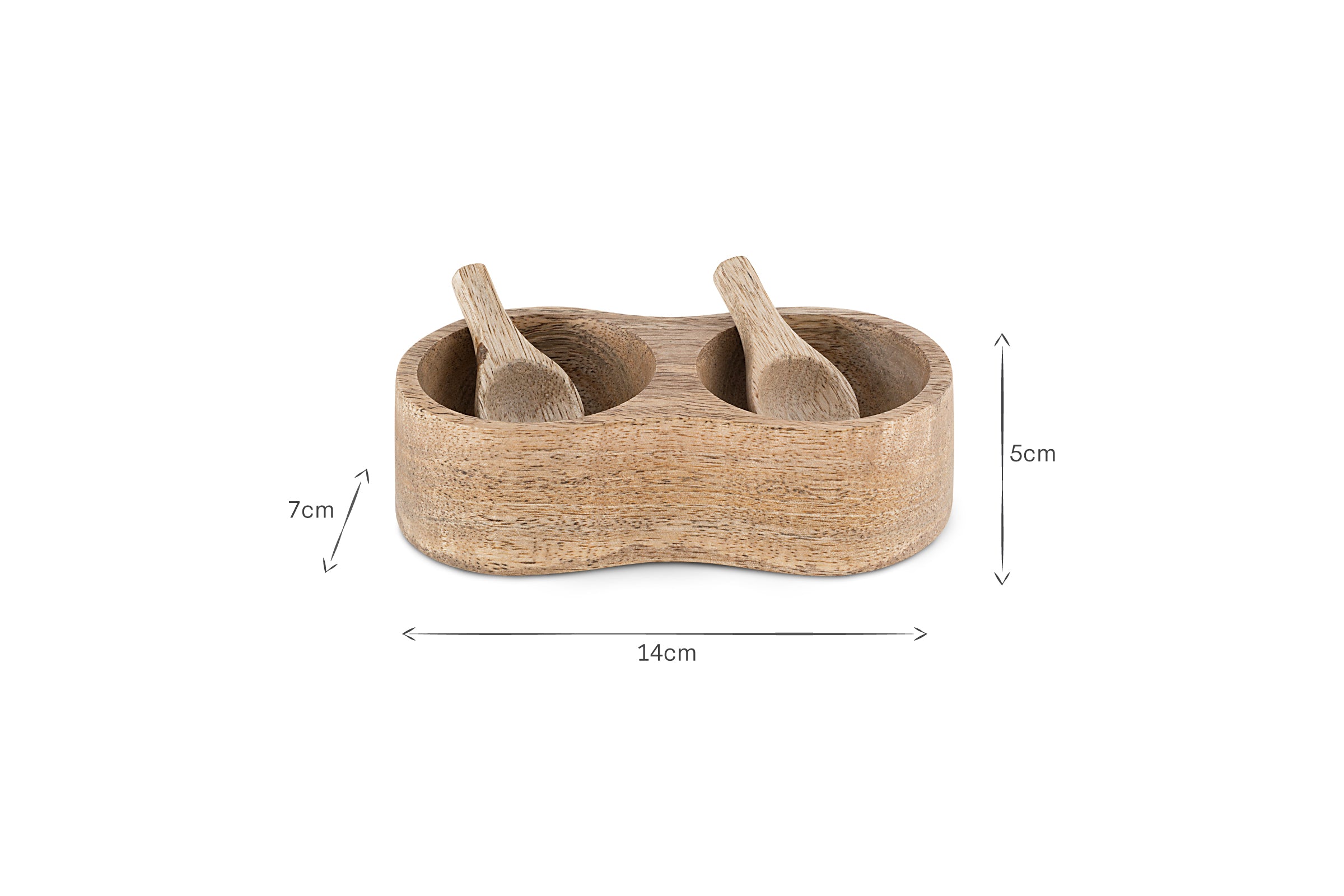 This beautifully carved salt and pepper server comes with two perfectly formed matching scoop spoons and makes a small yet elegant addition to a table setting or kitchen counter, turning seasoning into a daily ritual. We love using mango wood in our designs for its tactility, and for the natural variations in the grain that bring added interest to a piece in a kitchen setting. This set comes in a gift box for a thoughtful and useful present.