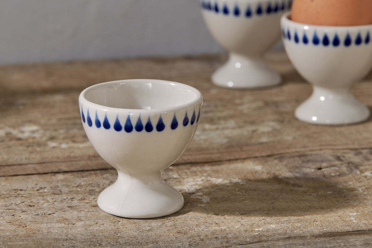 Our Indigo Drop egg cup is a new design for our effortlessly striking, bestselling Indigo Drop ceramics range. A simply-shaped piece with the classic hand painted indigo teardrop pattern arranged around the rim, this is another timeless classic to add to the crockery cabinet. Please note, this is available as a set of two.