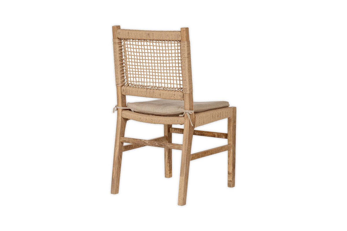 The recycled paper cord is made from long strips of flat paper, twisted to form a rope and then set into coils.The paper cord itself is very strong and durable, with a layer of protective wax to prevent stains. It is then handwoven onto the mango wood frame, which is itself hand-carved using traditional skills. Mango wood is sustainable wood that has a light natural tone with natural variation within the grain. We love working with this material which is a by-product of the mango growing industry in India and repurposing it to give it a new lease of life.
