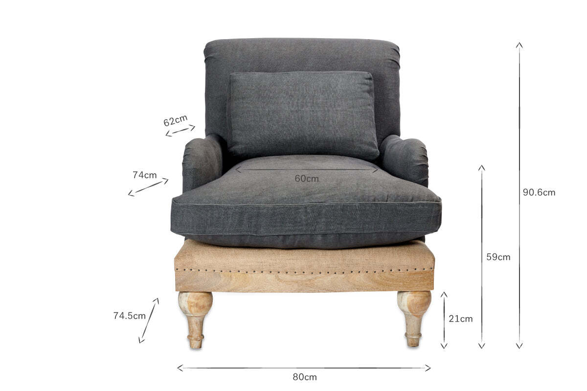 Our Abe upholstered chairs are timeless classics with a twist, the deconstructed back and sides reveals a natural mango wood frame and hemp lining. The front of each chair is upholstered in a tactile and calm stone or charcoal coloured linen. These beautifully crafted pieces make a subtle and elegant addition to a living room or bedroom.
