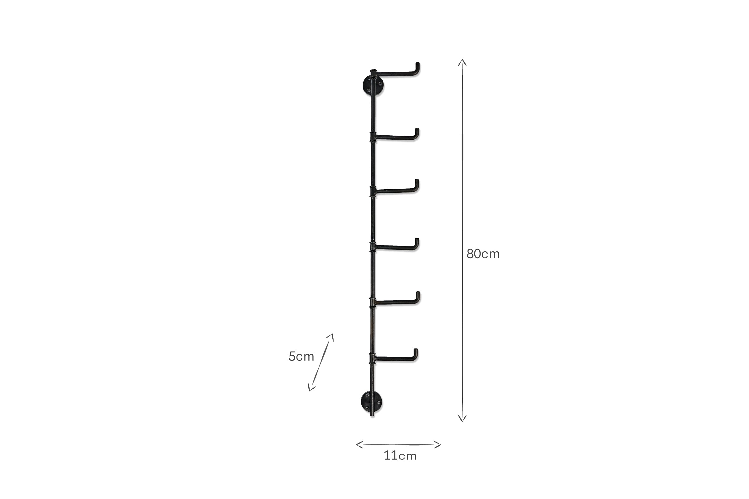 This well-designed Aniko wall mounted hook iron has a choice of 3 or 5 flexible rotating hooks. The bar attaches easily to a wall for stylish and practical storage.