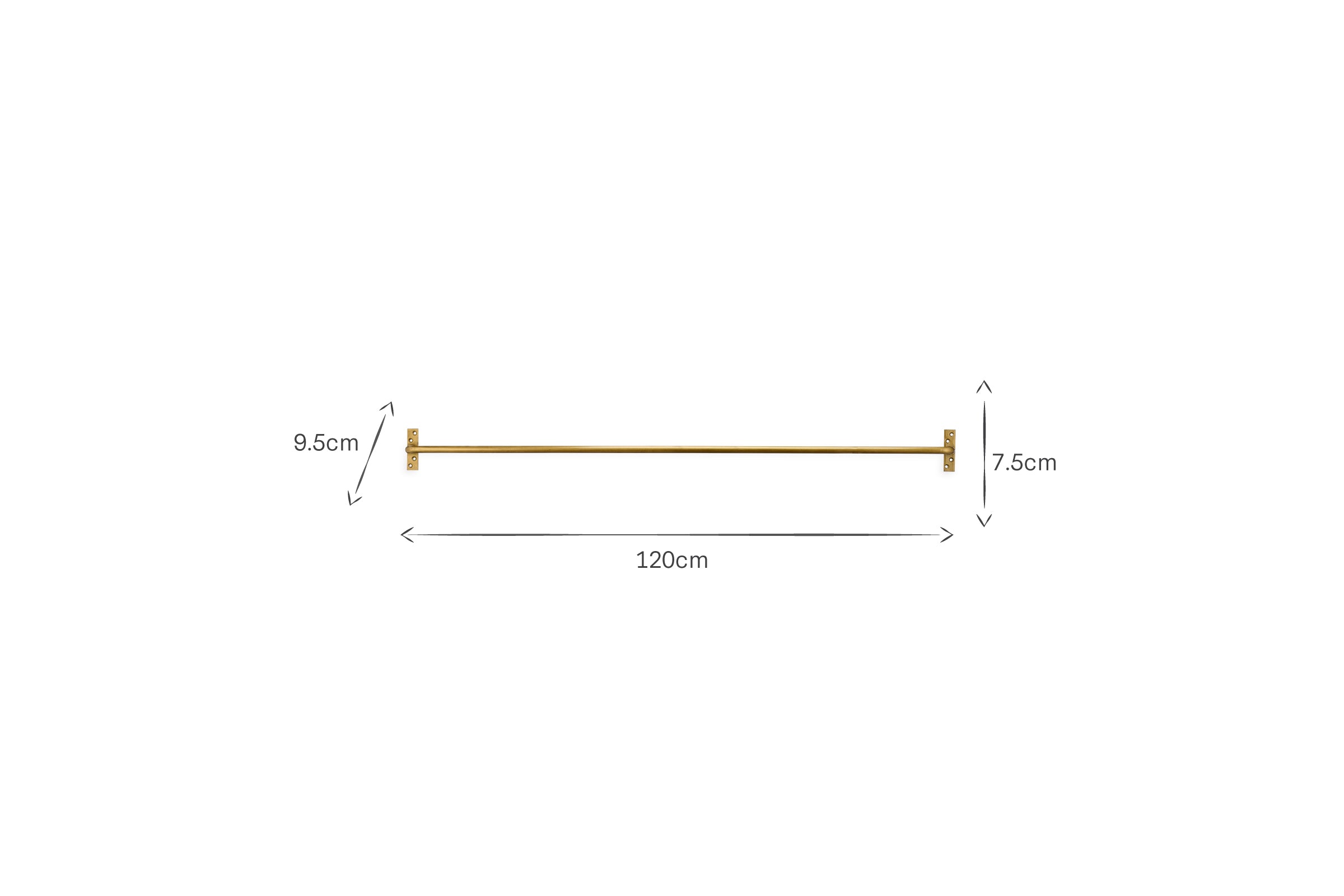 The brass Laila hanging rail is crafted from durable and sturdy iron. The elegant design makes this a versatile storage piece whether displayed in a kitchen area to display and hold pots of pans, or styled in a bathroom. To complete the look style with our Laila 'S' hooks.