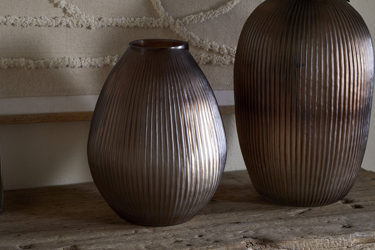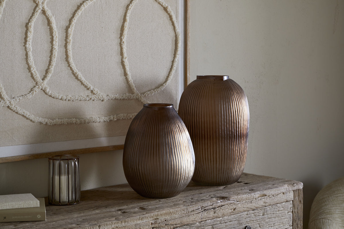 The Linsy vase pairs soft, organic shaping with a tactile ribbed surface, adding subtle texture and depth to any interior. The smoked brown tone of this glass vase offers a warm, understated elegance that works beautifully with a variety of colour palettes. Ideal for fresh flowers, this vase is as functional as it is decorative, an easy styling piece that brings quiet character to shelves, tables or mantels.