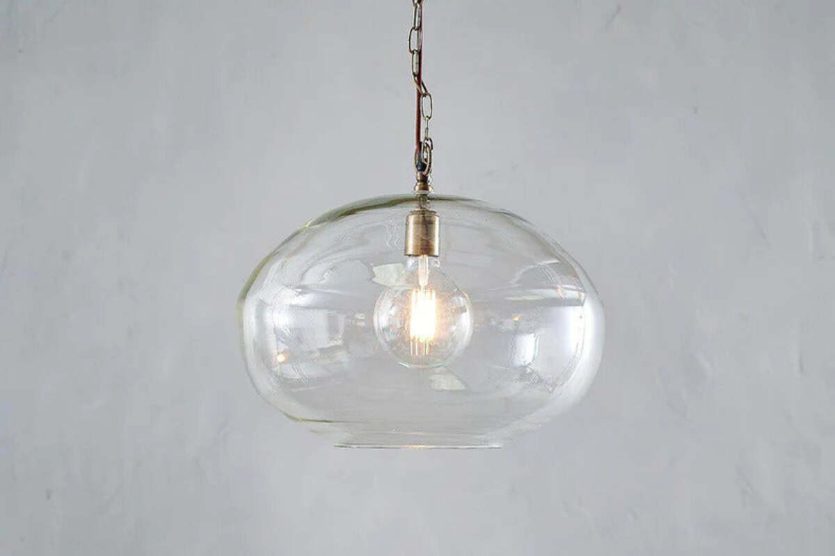 These circular glass Otoro lights are effortlessly sophisticated. The elegant shape is enhanced with the simple glass shade and solid brass fittings. These elegant lights come with brass fittings and a brass ceiling rose. The cord is brown fabric. Please note lighting does not include bulbs. All lighting meets with CE (Conformity Europe) approval.