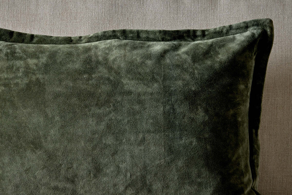 Luxurious and elegant, this cushion cover features a rich, thick velvet front in a beautiful deep green colour. Backed with natural linen and finished with a flange edge, it combines luxurious texture with durable craftsmanship. The fabric is woven on a loom, ensuring a soft, plush finish that brings both comfort and refined style to any seating area or bedroom. Available in two sizes and colours.