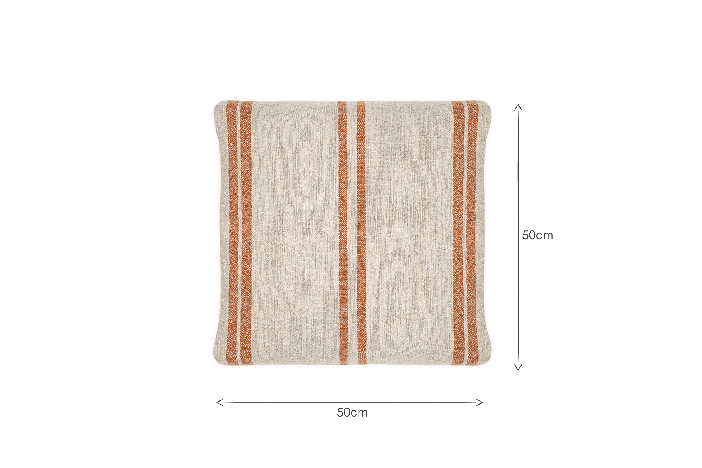 Simple yet eye-catching, our Tajana Linen cushion cover in neutral with a bold rust stripe is crafted from tactile slubby linen that is irresistibly soft to the touch. Perfect for updating a living space with its understated style or bringing a touch of timeless comfort to an outdoor setting. It also has ties at the back, for securing to a dining chair to create a laid back atmosphere. Please note, this is the outer cover only. Also available in a thin stripe variation. Our feather cushion inners will accompany your cushion cover perfectly.